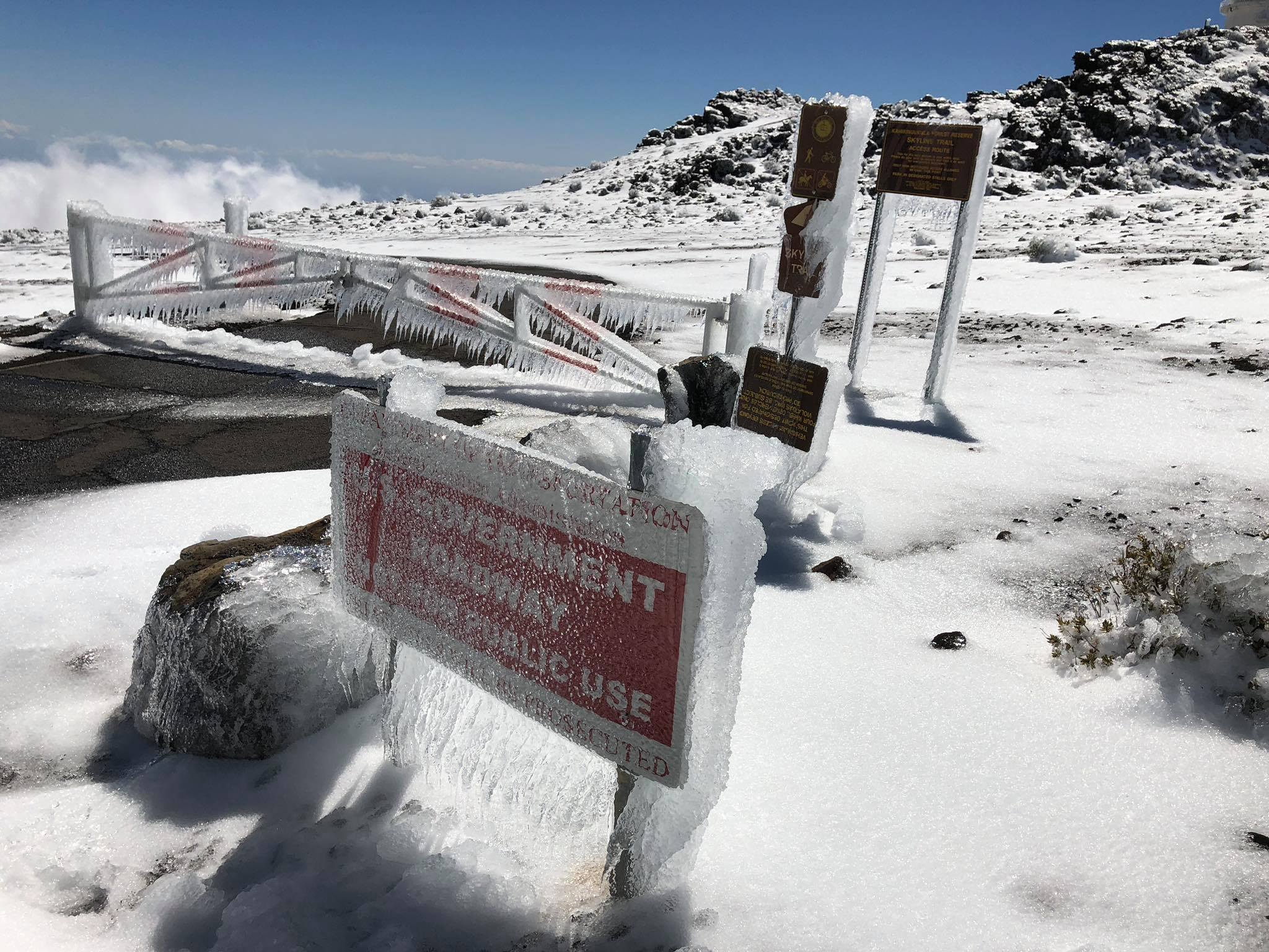 Combination of very strong winds (>100 mph) and freezing rain and snow, disabled Haleakala summit and also knocked town tens of utility poles. Here are the photos of the summit and AMOS units after the storm. Photos takenb by Haleakala Nation Park ranger and IfA Maui staff.
