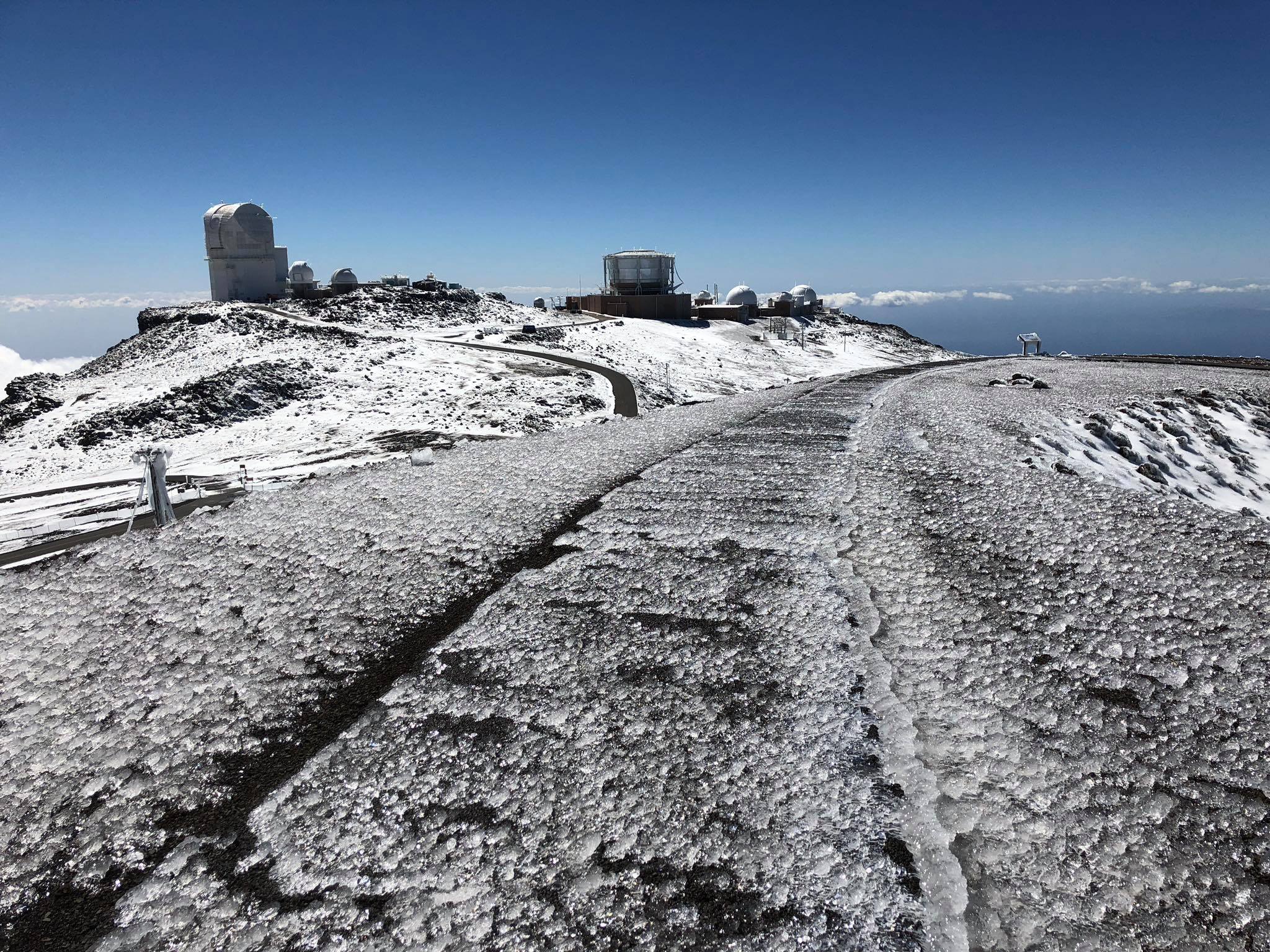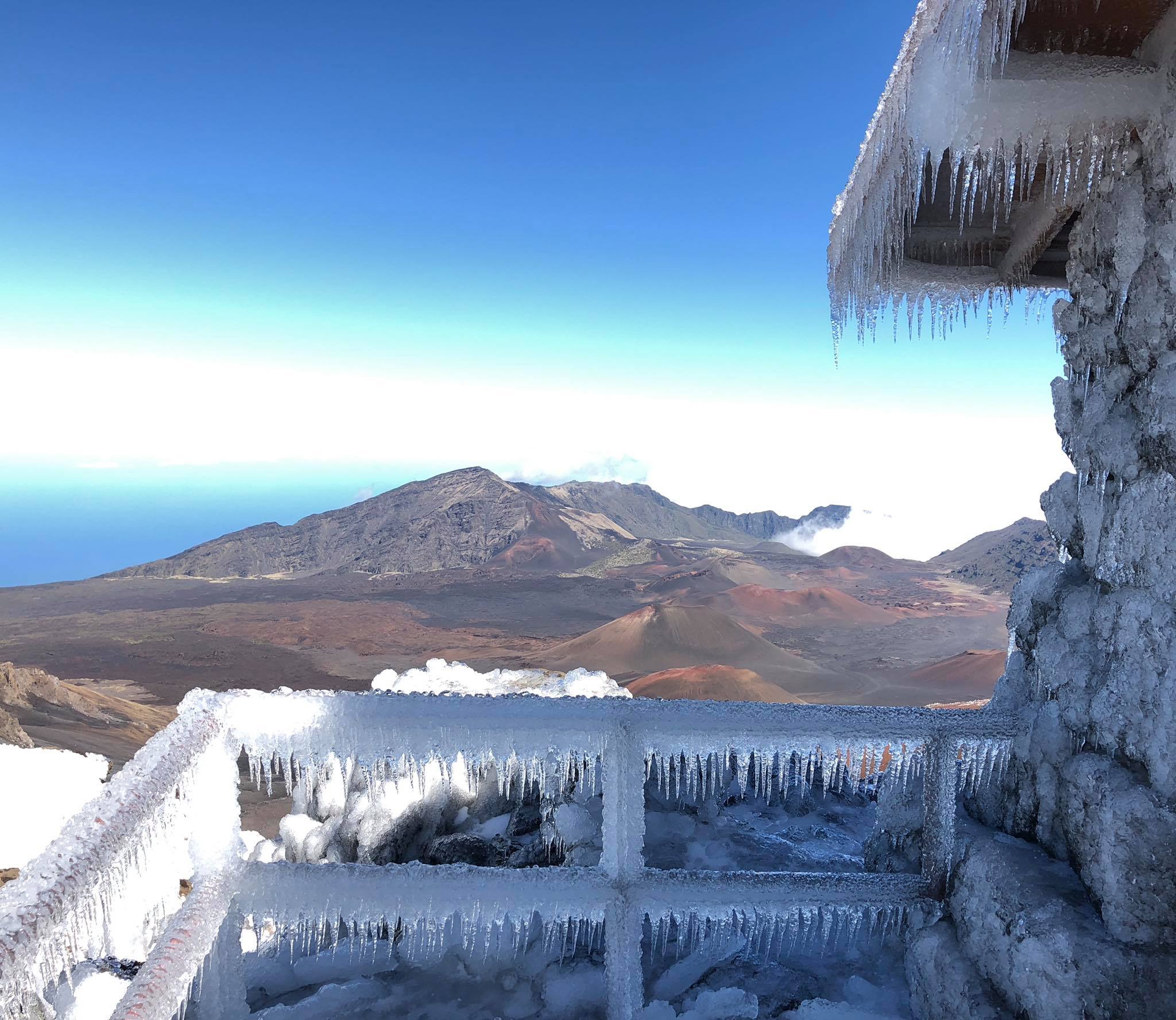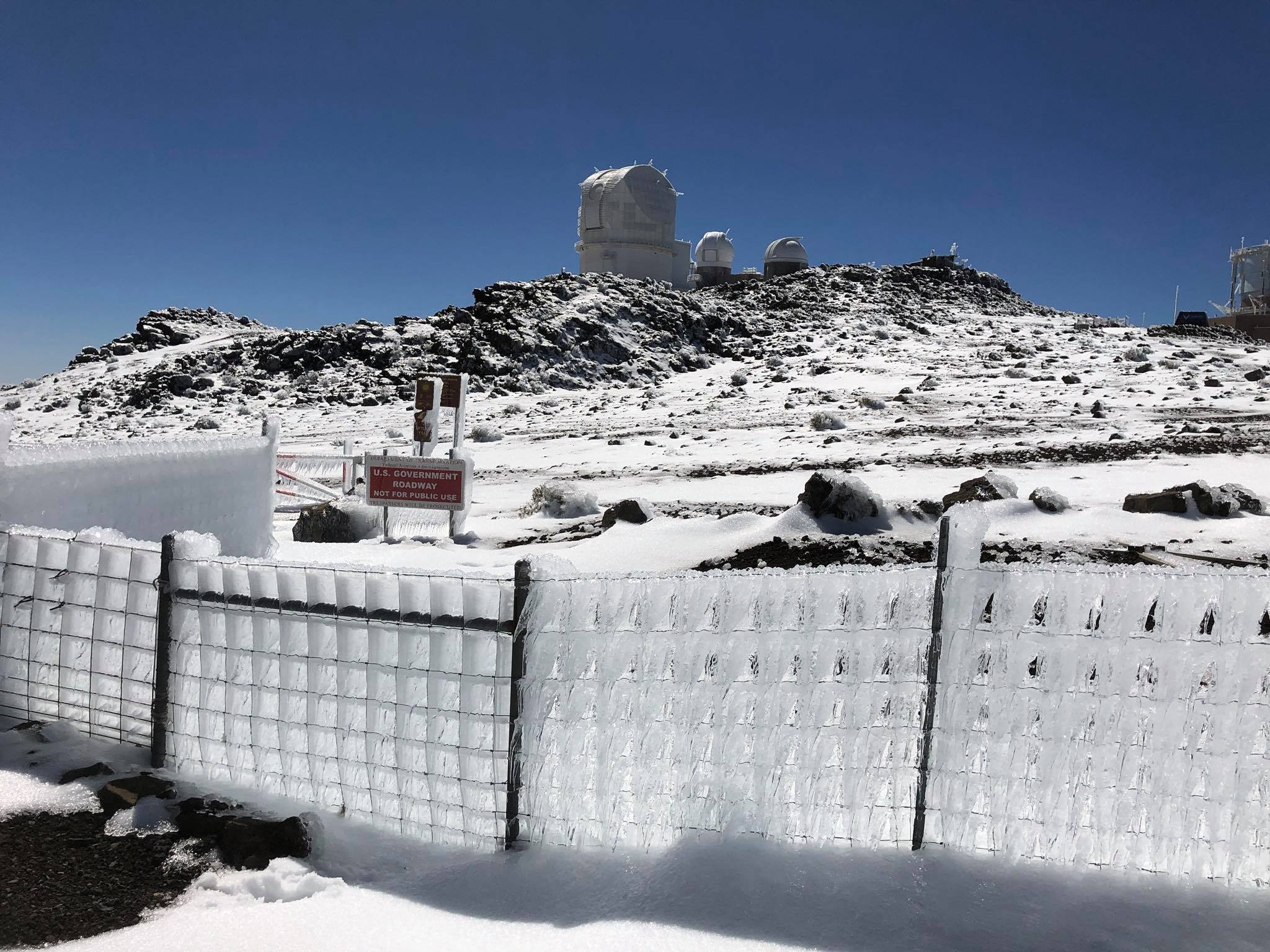 Combination of very strong winds (>100 mph) and freezing rain and snow, disabled Haleakala summit and also knocked town tens of utility poles. Here are the photos of the summit and AMOS units after the storm. Photos takenb by Haleakala Nation Park ranger and IfA Maui staff.